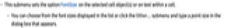 - This submenu sets the option FontSize on the selected cell object(s) or on text within a cell.