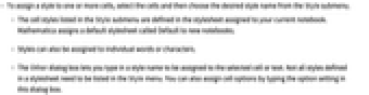 - The cell styles listed in the Style submenu are defined in the stylesheet assigned to your current notebook. Mathematica assigns a default stylesheet called Default to new notebooks.