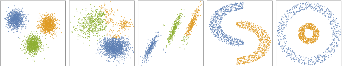 - The following plots show the results of the "Agglomerate" method applied to toy datasets: