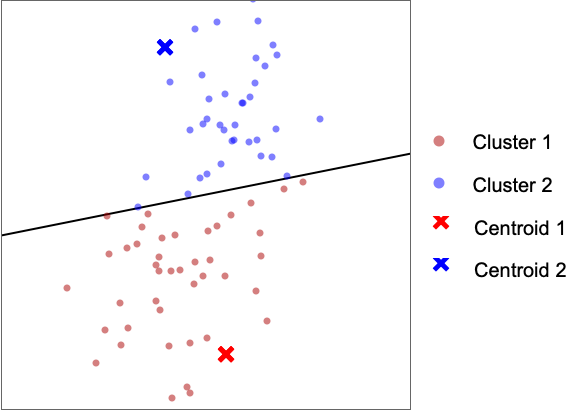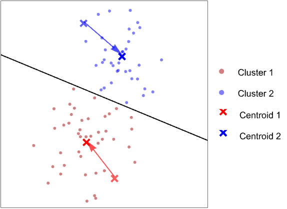 - Once all clusters are defined, the mean of each cluster becomes a new centroid: