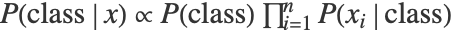 - Determines the class using Bayes's theorem and assuming that features are independent given the class.