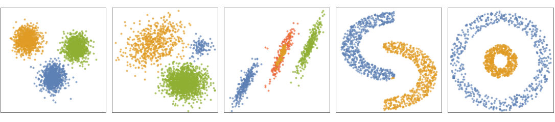 - The following plots show the results of the "Spectral" method applied to toy datasets: