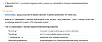 - The "CTCBeamSearch" decoder supports the following properties: