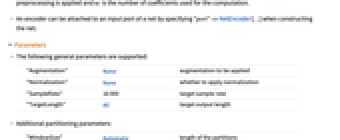 "Augmentation" None augmentation to be applied "Normalization" None whether to apply normalization "SampleRate" 16000 target sample rate "TargetLength" All target output length - Additional partitioning parameters: