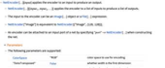 - An encoder can be attached to an input port of a net by specifying "port"->NetEncoder[…] when constructing the net.