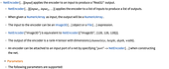 - An encoder can be attached to an input port of a net by specifying "port"->NetEncoder[…] when constructing the net.