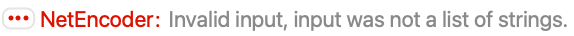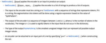 - NetEncoder[…][{input1,input2,…}] applies the encoder to a list of strings to produce a list of outputs.