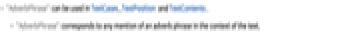 - "AdverbPhrase" can be used in TextCases, TextPosition and TextContents.