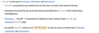 - Any specific "Aircraft" entity such as can also be used as a content type in TextCases, TextPosition and TextContents.