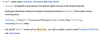 - Homonyms of artworks that are not artworks should not be detected as "Artwork" (if the context allows disambiguation).