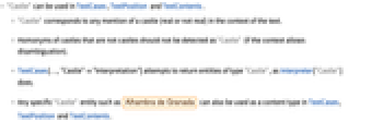 - Homonyms of castles that are not castles should not be detected as "Castle" (if the context allows disambiguation).