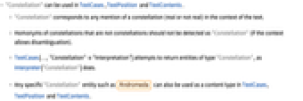 - Any specific "Constellation" entity such as can also be used as a content type in TextCases, TextPosition and TextContents.
