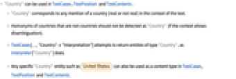 - Any specific "Country" entity such as can also be used as a content type in TextCases, TextPosition and TextContents.