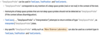 - Any specific "DeepSpaceProbe" entity such as can also be used as a content type in TextCases, TextPosition and TextContents.
