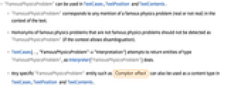 - "FamousPhysicsProblem" can be used in TextCases, TextPosition and TextContents.