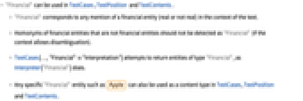 - Any specific "Financial" entity such as can also be used as a content type in TextCases, TextPosition and TextContents.
