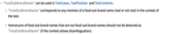 - Homonyms of food sub brand names that are not food sub brand names should not be detected as "FoodSubBrandName" (if the context allows disambiguation).