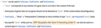 - "Gene" can be used in TextCases, TextPosition and TextContents.