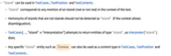 - Any specific "Island" entity such as can also be used as a content type in TextCases, TextPosition and TextContents.