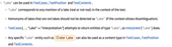 - Any specific "Lake" entity such as can also be used as a content type in TextCases, TextPosition and TextContents.