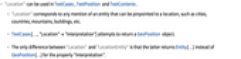 - The only difference between "Location" and "LocationEntity" is that the latter returns Entity[…] instead of GeoPosition[…] for the property "Interpretation".