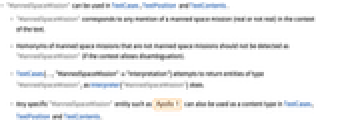 - "MannedSpaceMission" can be used in TextCases, TextPosition and TextContents.