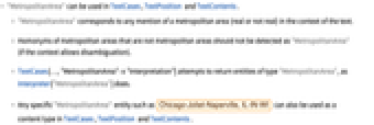 - Any specific "MetropolitanArea" entity such as can also be used as a content type in TextCases, TextPosition and TextContents.