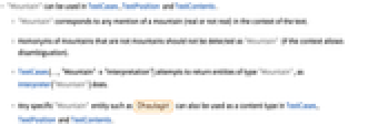 - Any specific "Mountain" entity such as can also be used as a content type in TextCases, TextPosition and TextContents.
