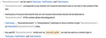 - Any specific "MusicalInstrument" entity such as can also be used as a content type in TextCases, TextPosition and TextContents.