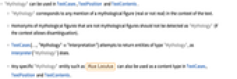 - TextCases[…,"Mythology""Interpretation"] attempts to return entities of type "Mythology", as Interpreter["Mythology"] does.