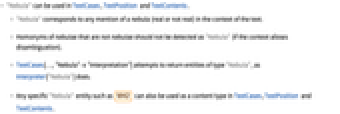 - Homonyms of nebulae that are not nebulae should not be detected as "Nebula" (if the context allows disambiguation).