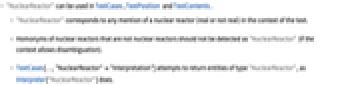 - TextCases[…,"NuclearReactor""Interpretation"] attempts to return entities of type "NuclearReactor", as Interpreter["NuclearReactor"] does.