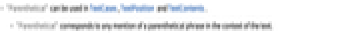 - "Parenthetical" can be used in TextCases, TextPosition and TextContents.