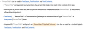 - Any specific "PersonTitle" entity such as can also be used as a content type in TextCases, TextPosition and TextContents.