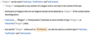 - Any specific "Religion" entity such as can also be used as a content type in TextCases, TextPosition and TextContents.