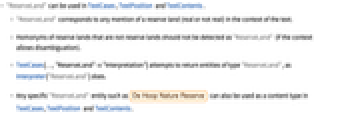 - TextCases[…,"ReserveLand""Interpretation"] attempts to return entities of type "ReserveLand", as Interpreter["ReserveLand"] does.