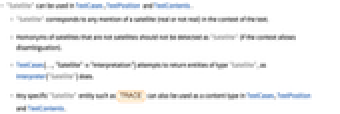 - Any specific "Satellite" entity such as can also be used as a content type in TextCases, TextPosition and TextContents.
