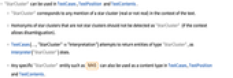 - Any specific "StarCluster" entity such as can also be used as a content type in TextCases, TextPosition and TextContents.