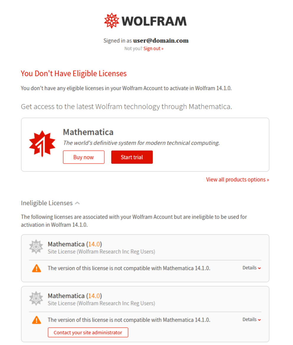 Select the Wolfram product you want to activate, and you will be directed to a page that contains your activation key for this product.