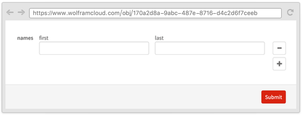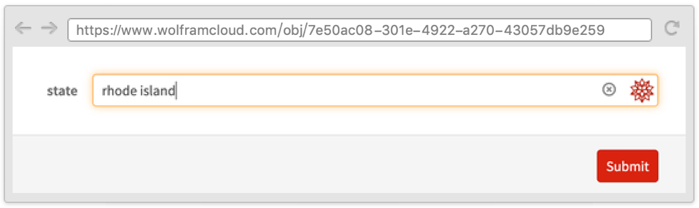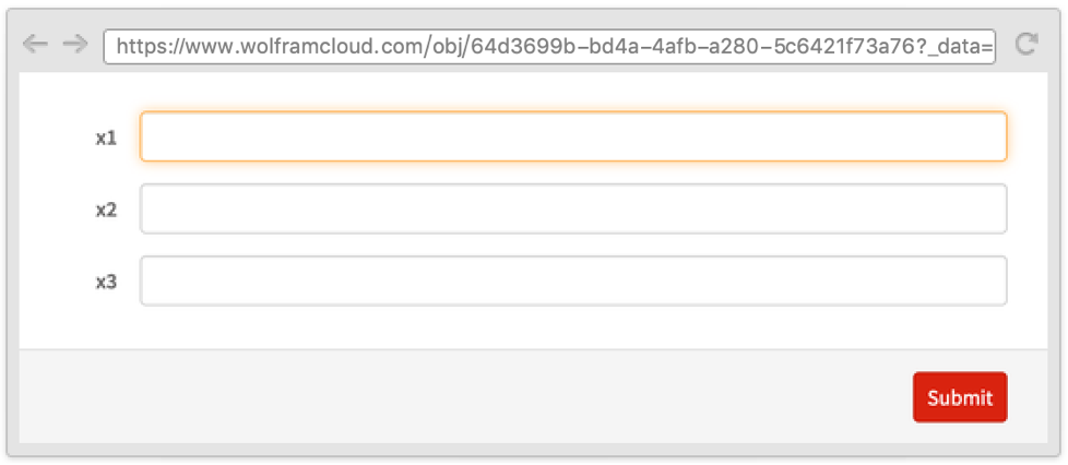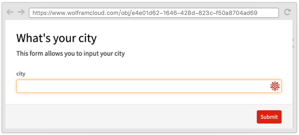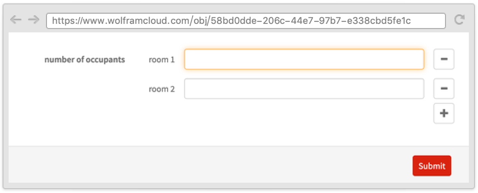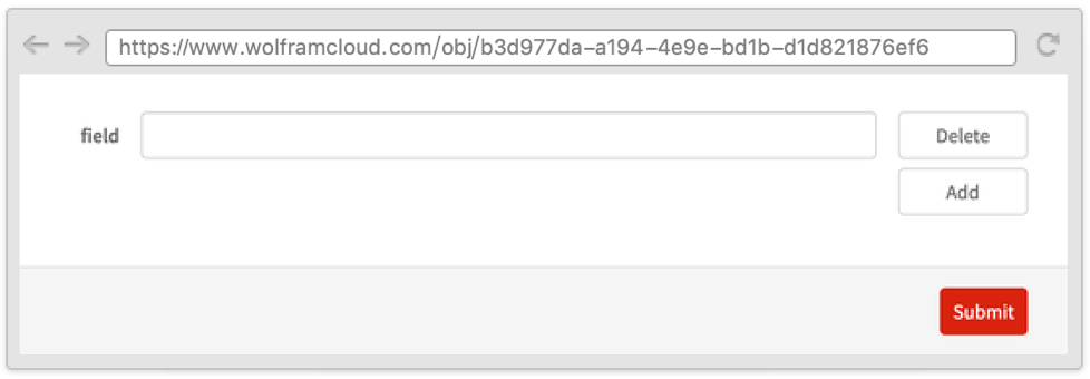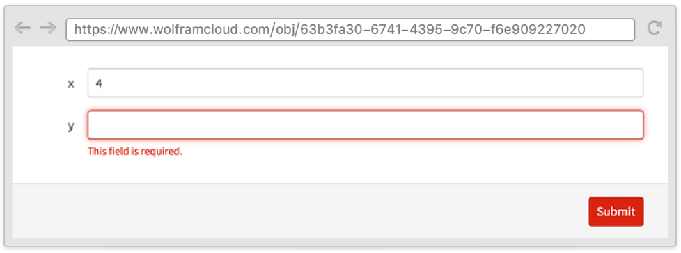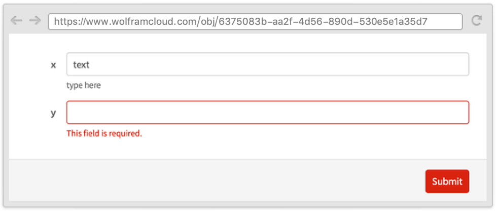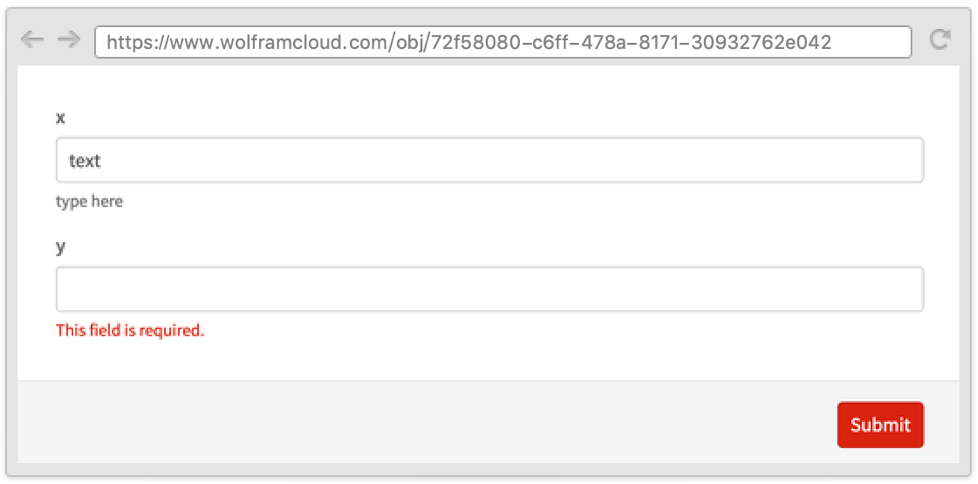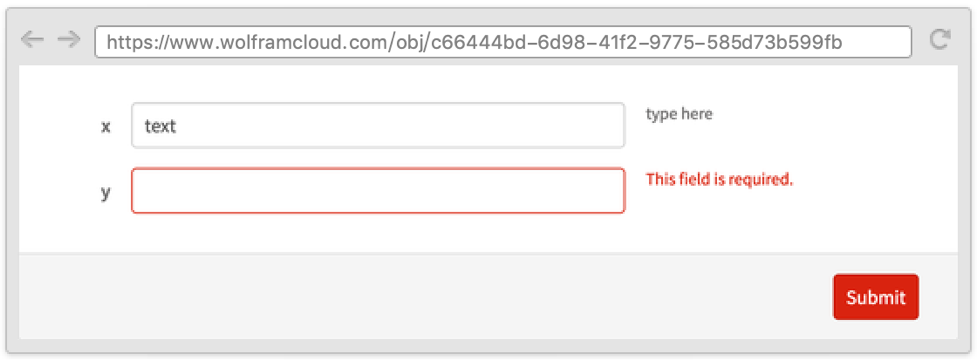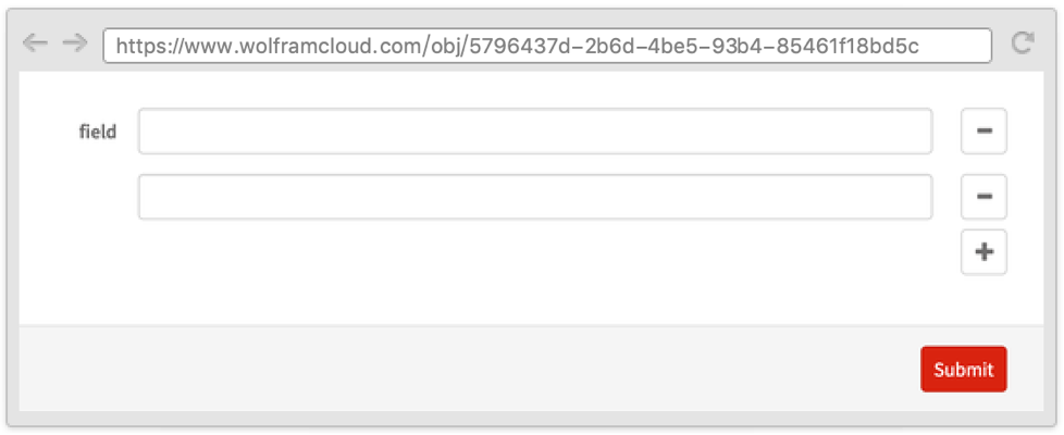 Sometimes it is useful to define a form where one field depends on another and where both appear on the same page. This can be done by using the Wolfram Language templating language, with symbols such as TemplateSlot.