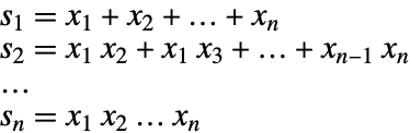 Here the elementary symmetric polynomials in the symmetric part are replaced with variables