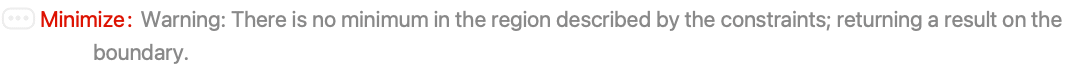 Wolfram Language functions for constrained optimization include Minimize, Maximize, NMinimize, and NMaximize for global constrained optimization, FindMinimum for local constrained optimization, and LinearOptimization for efficient and direct access to linear optimization methods. The following table briefly summarizes each of the functions.
