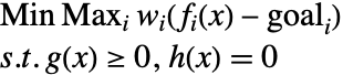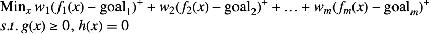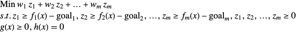 reflect the relative importance, and normalize the deviation to take into account the relative scales and units. Possible values for the weights are the inverse of the goals to be attained. The previous problem can be reformulated to one that is easier to solve.