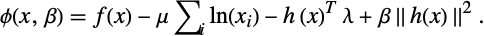 . The non-negative constraints are then replaced by adding a barrier term to the objective function