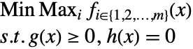 The minimax (also known as minmax) problem is that of finding the minimum value of a function defined as the maximum of several functions, that is,