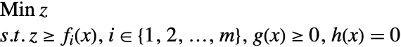 While this problem can often be solved using general constrained optimization technique, it is more reliably solved by reformulating the problem into one with smooth objective function. Specifically, the minimax problem can be converted into the following