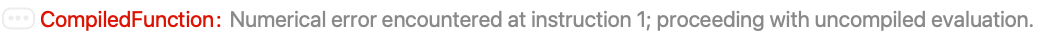 The compiled code cannot be used, so the Wolfram Language prints a warning, then just evaluates the original symbolic expression: