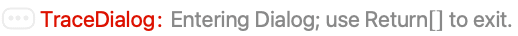 What TraceDialog does is to call the function Dialog on a sequence of expressions. The Dialog function is discussed in detail in "Dialogs". When you call Dialog, you are effectively starting a subsidiary Wolfram System session with its own sequence of input and output lines.