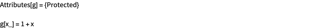 The Protected attribute affects assignments. The Wolfram Language does not allow you to make any definition associated with a symbol that carries this attribute. The functions Protect and Unprotect discussed in "Modifying Built-in Functions" can be used as alternatives to SetAttributes and ClearAttributes to set and clear this attribute. As discussed in "Modifying Built-in Functions", most built‐in Wolfram Language objects are initially protected so that you do not make definitions for them by mistake.