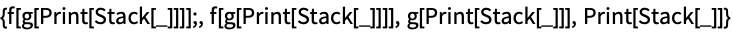 Thus at the point when x is being evaluated, the stack associated with the evaluation of an expression like f[g[x]] will have the form {f[g[x]],g[x],x}.